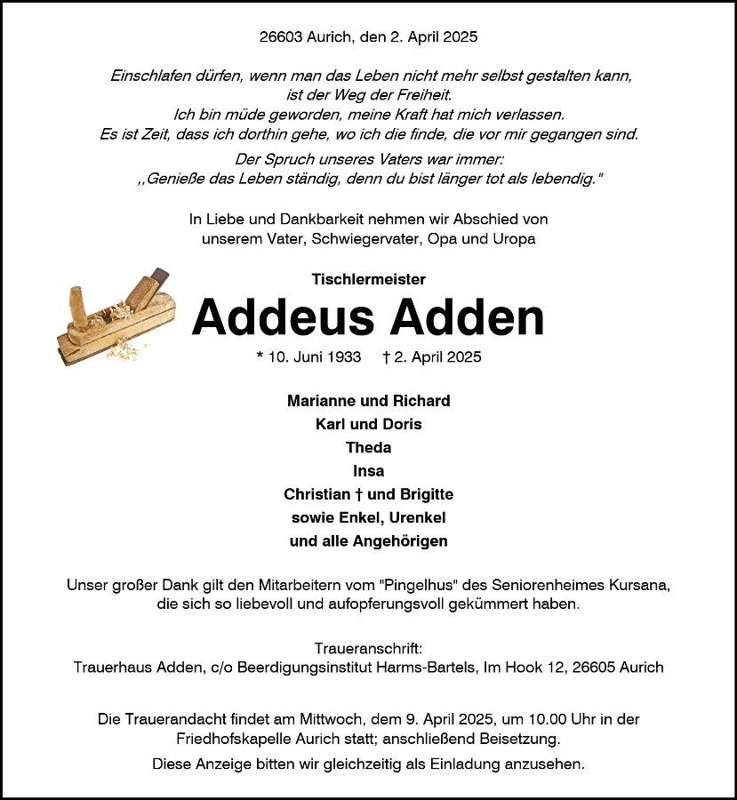 gestorben am 2. April 2025 in Aurich
