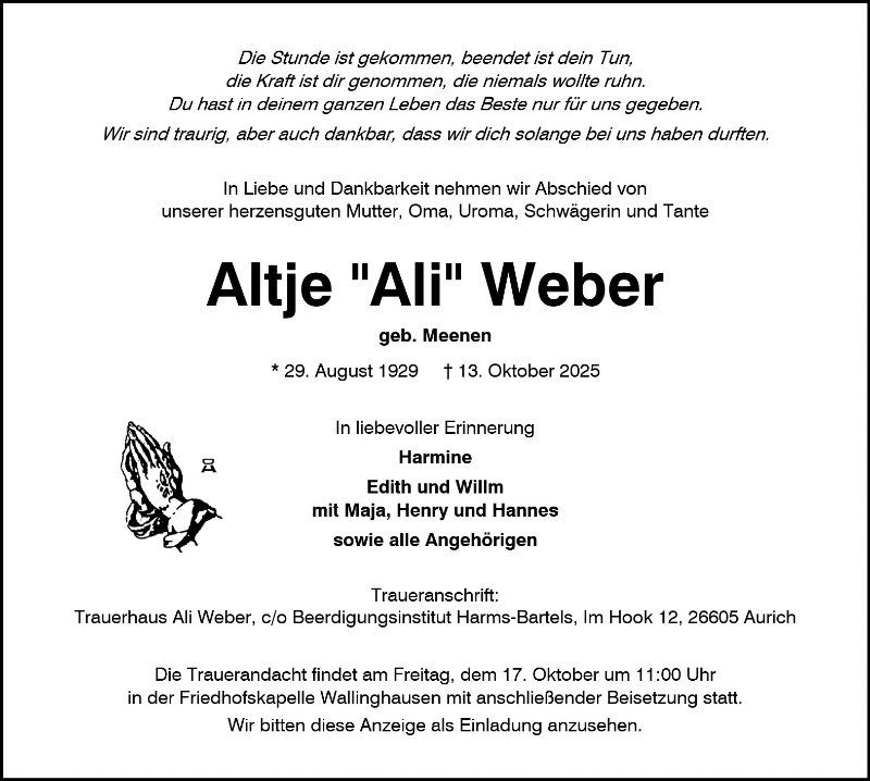 gestorben am 13. Oktober 2025 in Wallinghausen