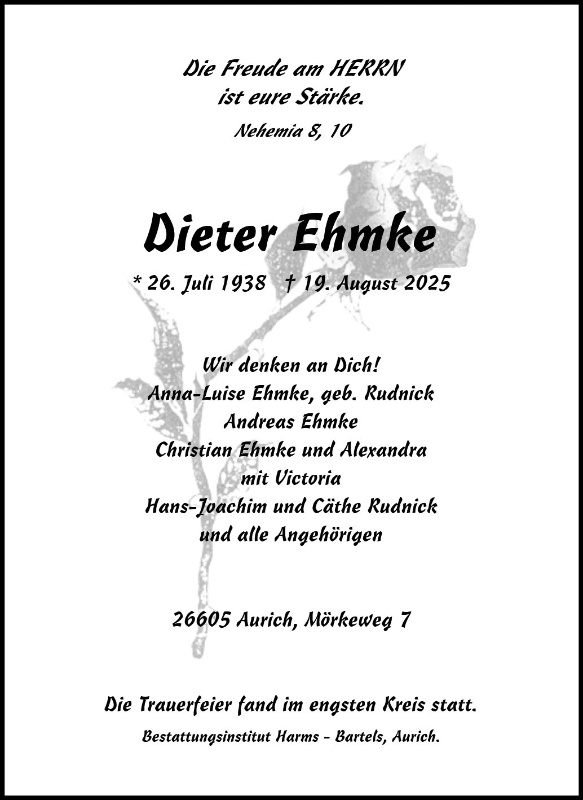 wir wünschen Ihnen für die kommende Zeit viel Kraft und dass es Ihnen gelingt, dankbar auf die positiven Erinnerungen zurückzublicken. Diese Gedenkseite möge Ihnen dabei helfen, Ihre Trauer zu teilen und das Andenken gemeinsam wachzuhalten.