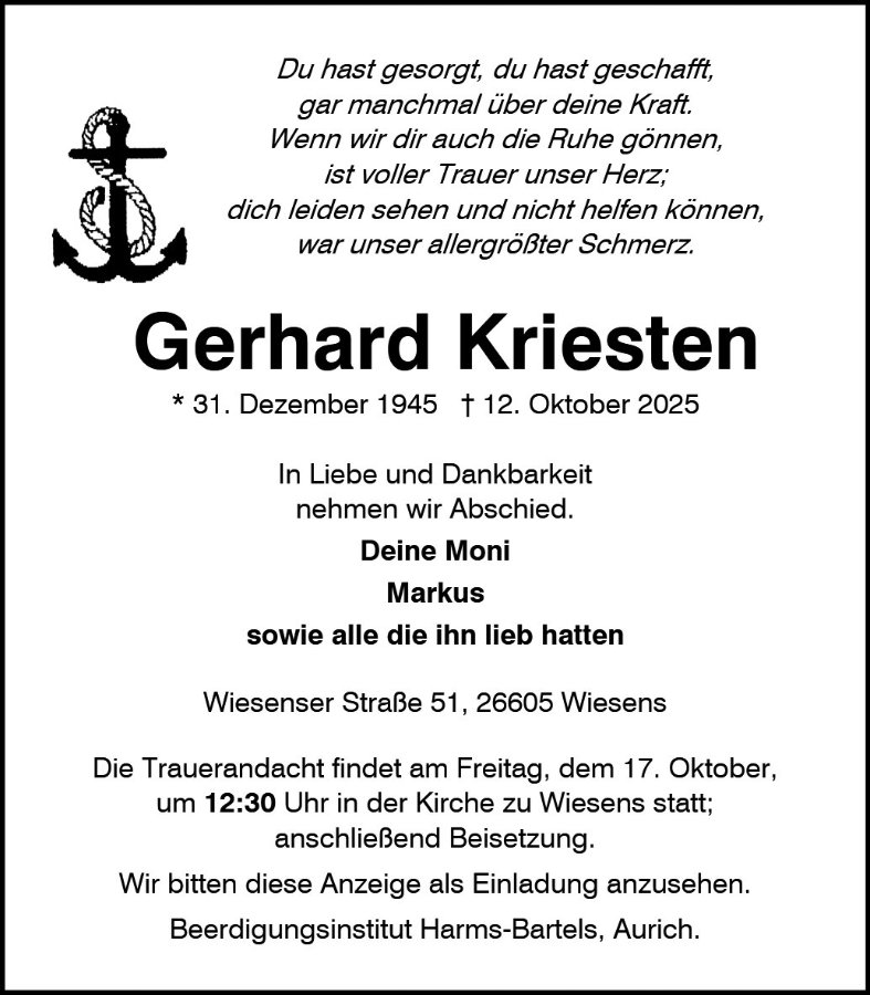 Gerhard Kriestengestorben am 12. Oktober 2025