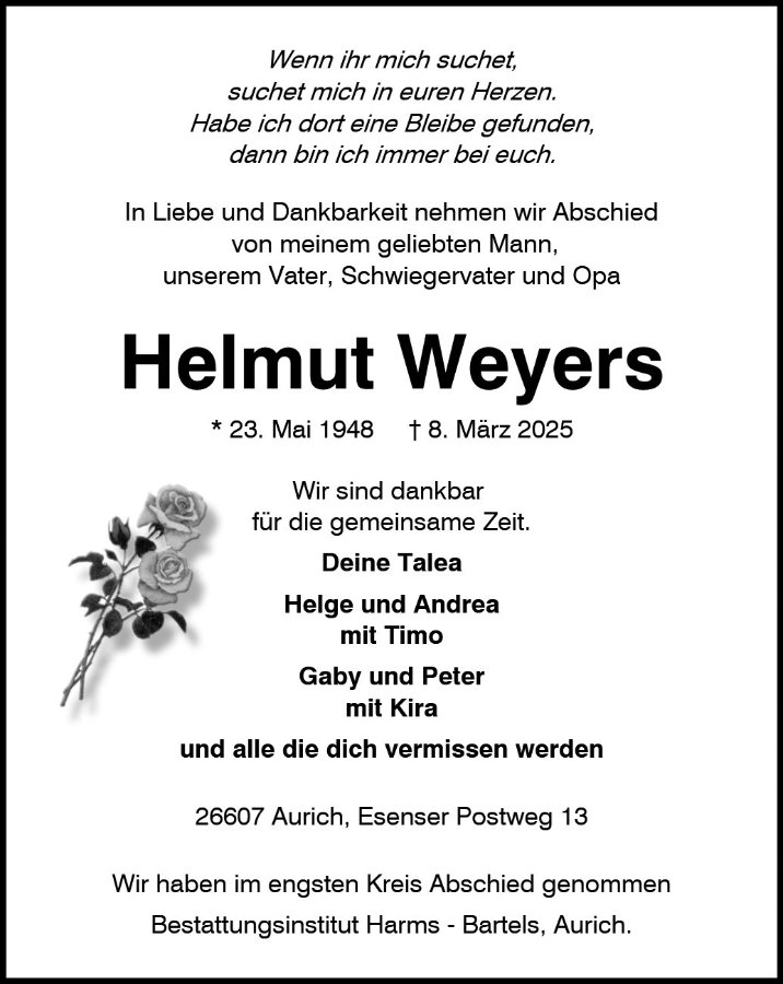 wir wünschen Ihnen von Herzen viel Kraft, dass Sie Menschen um sich haben, die Ihnen in dieser schweren Zeit beistehen und Halt geben. Zusätzlich können Sie auf dieser Gedenkseite Erinnerungen teilen und so das Andenken gemeinsam wachhalten.