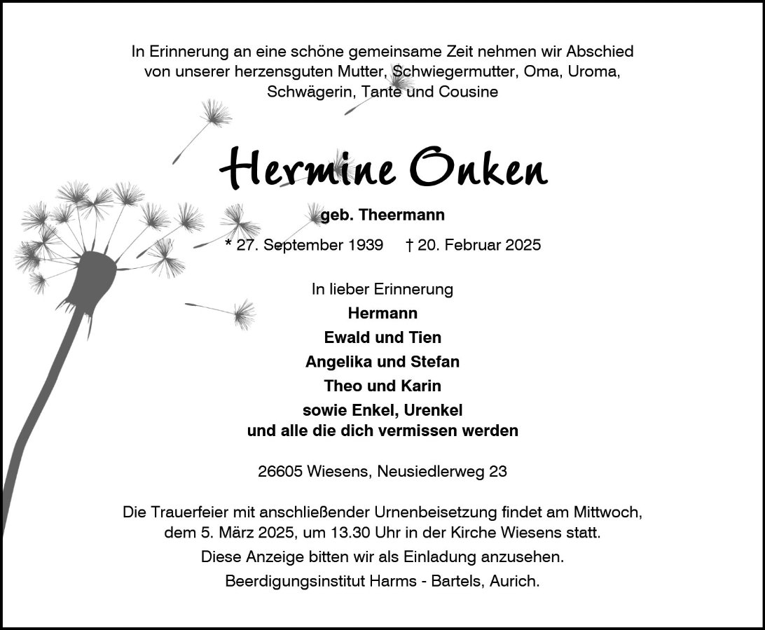 Hermine "Mine" Onkengestorben am 20. Februar 2025
